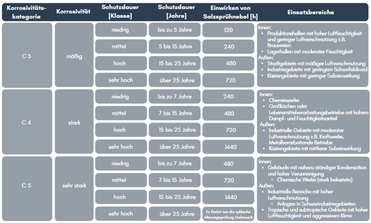 Die Klassifizierung von Beschichtungen erfolgt gemäß der Norm ISO 12944, die die Korrosivitätskategorien von C1 (geringe Belastung) bis CX (extreme Belastung) definiert.