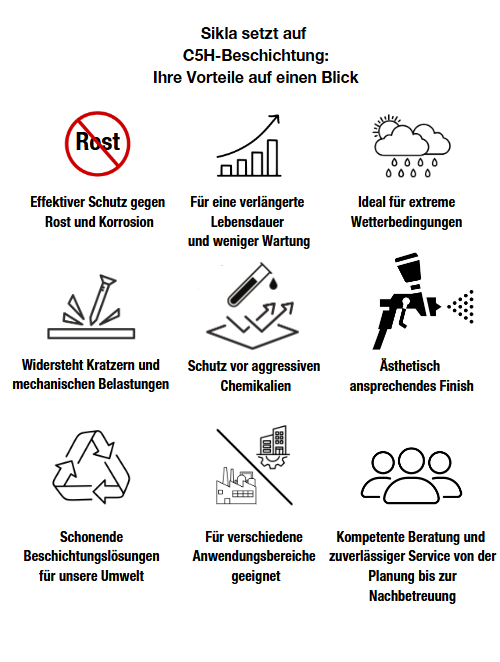 Die C5H-Beschichtung erfüllt die Anforderungen der ISO 12944, was sie für Projekte mit hohen Qualitätsstandards unverzichtbar macht.